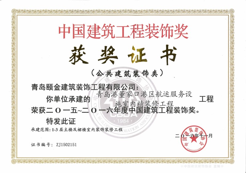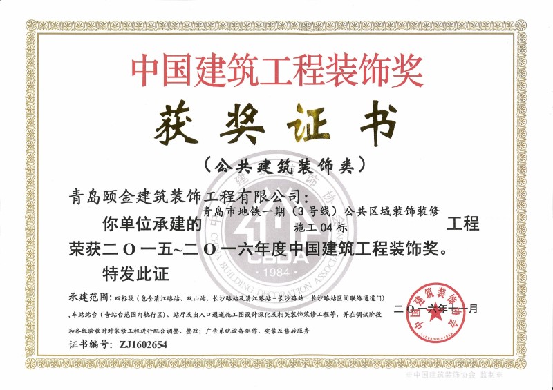 全國建筑裝飾行業(yè)科技創(chuàng)新成果獎
